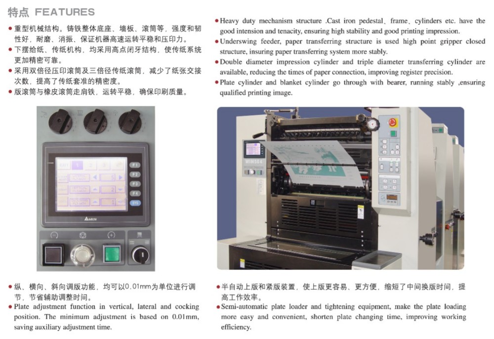 Percetakan Offset Printing Label Papat Warna A3 Gedhe dirancang kanthi modul kinerja dhuwur, lan kabeh rol lan gear kanthi tliti dhuwur-dhuwur, mekanisme pakan kertas sing kuwat, sistem registrasi kertas kanthi tliti dhuwur, lan sistem pasokan tinta sing stabil. Dicocogake kanggo nyukupi syarat pasar kanggo nyetak warna lembaran sing bermutu, efisien, lan terjangkau. Sampeyan ora kudu tetep mung siji kekandelan kertas, uga-bisa nganggo kertas tipis (0,04mm) nganti karton nglukis (0,4mm). Ana uga kontrol layar demek karo antarmuka program intuisi, ngijini sampeyan nyetel setelan lan printing paramèter ing pinter, cara langsung.